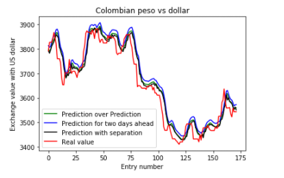 This project consists of a currency rate exchange forecaster. Useful for me as a Colombian traveling to the US. The ides of this project was to create a Deep Learning model that would give me the most accurate prediction of the TRM up to one week in advance. Obviously the further ahead in time the most innacurate it becomes. However, it gives very acceptable results taking the scale in which the US dollar affect the Colombian Peso.